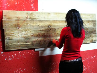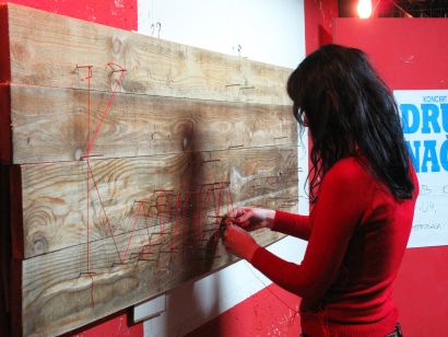 A performance during which I hammer some nails into the wall and then spread the red thread through them in a way that "Ksenija Kordić" is written.